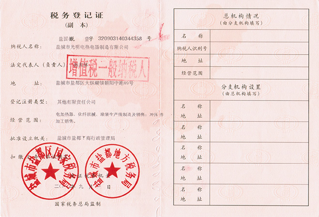 • 稅務登記證